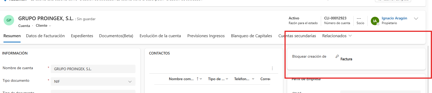 Es un paso sencillo solamente tenemos que localizar el cliente que nos pase administración para el desbloque se busca por el nombre o por el id que tiene que ser "CLI-XXXXXX" cuando ya lo hemos encontrado vamos al parado de la derecha y se quita el check de factura dando a la X